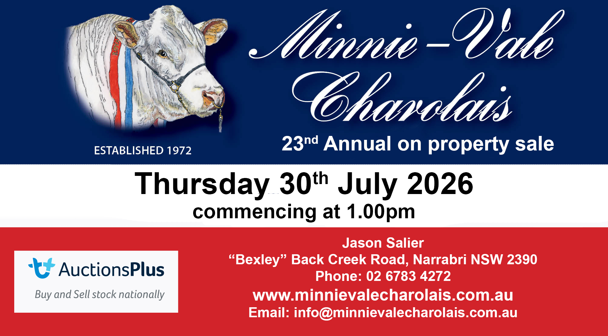 Minnie-Vale Charolais 23nd Annual on Property Sale – Bexley, Back Creek Road, Narrabri NSW Thursday 30th July 2026 commencing at 1pm